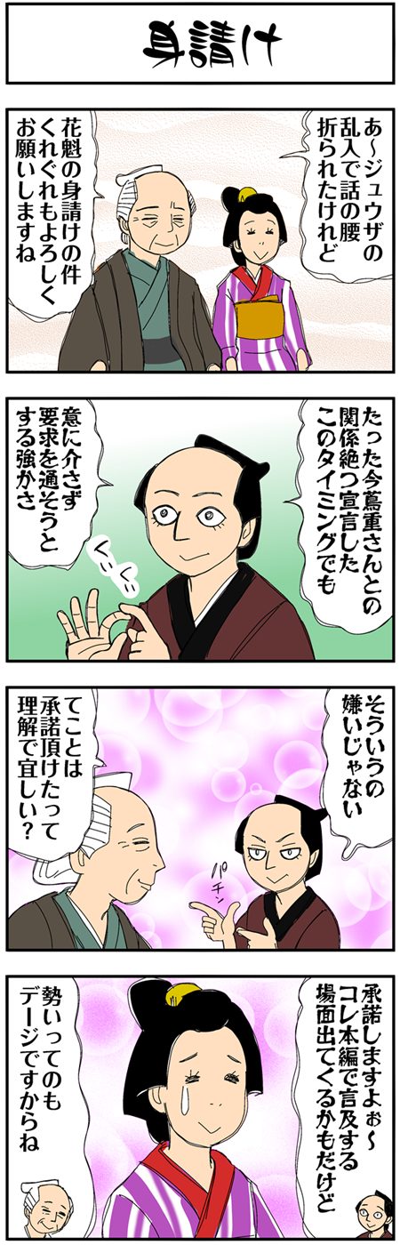 朋誠堂喜三二に学んだとかで黄表紙の執筆に取り掛かる蔦屋重三郎は、妻のおていさんや山東京伝(北尾政演)に対して、なんだか非常に横暴な対応。