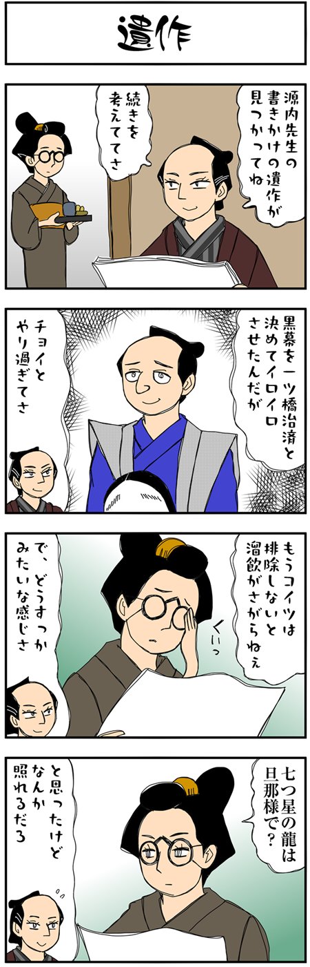 その黒幕を一橋治済にして先へ進む蔦重ですが、治済を懲らしめる段階で筆が止まってしまいます。