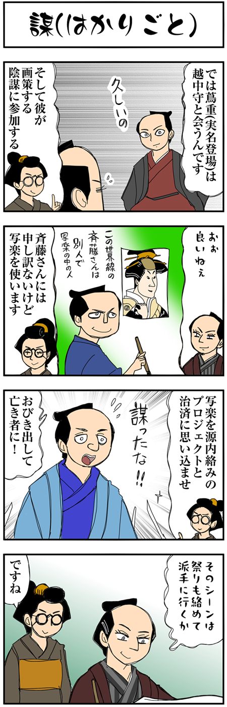 一橋治済には、写楽の絵が源内によるものだと思い込ませ、祭りに一橋治済を呼び出す――。