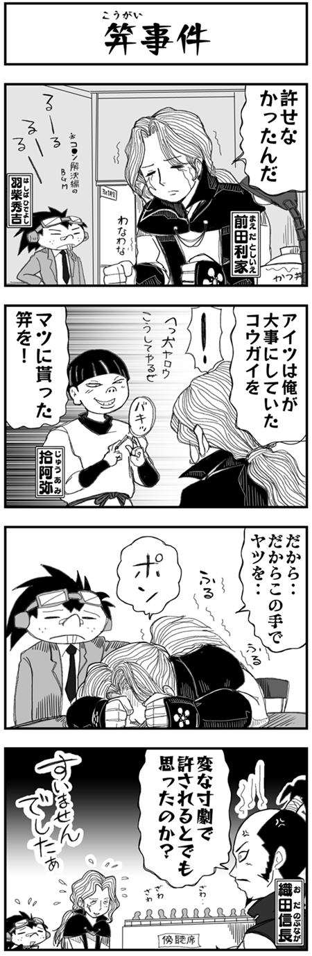 信長寵愛の同朋衆である拾阿弥に笄(こうがい)を盗まれ、いったん事態は治まるも、その後も侮辱し続けられ、ついに利家はブチ切れて拾阿弥を斬殺してしまったのです。