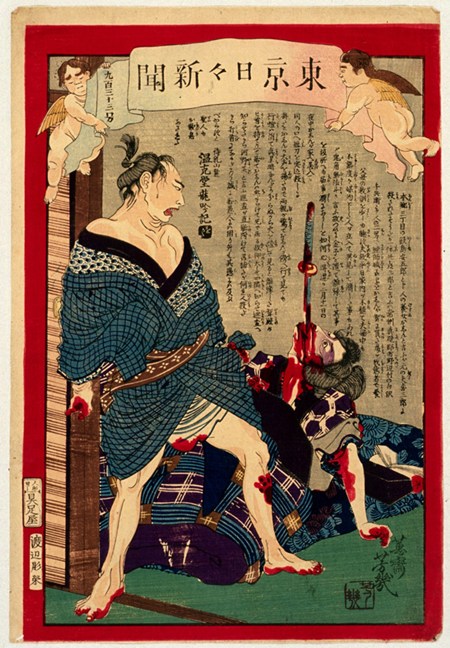 読者が飛びつきそうなおもしろゴシップネタに、毒々しい錦絵を入れる――そんなスタイルが持ち味でして、この挿絵がまた味があるんですな。