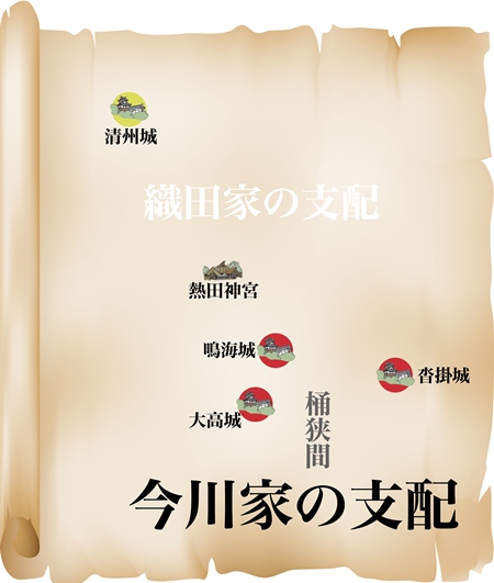 鳴海城と大高城を救済し、尾張の支配を固めるため進軍を開始。